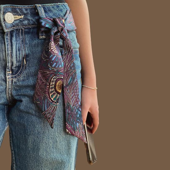 Discover fresh ways to wear your skinny scarf — style it as a chic neck tie, hair ribbon, wrist wrap, playful bag detail, or even as a colourful accent on your jeans. Let these looks inspire you to elevate everyday outfits with our Liberty silk twillies.