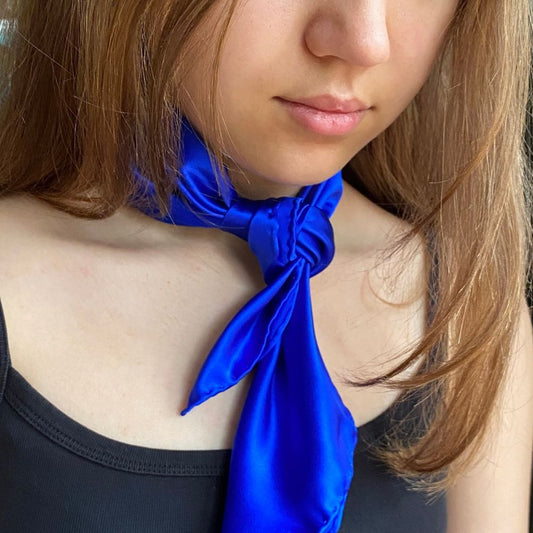 Mulberry Silk Satin Bandana - Blue Orange Paisley